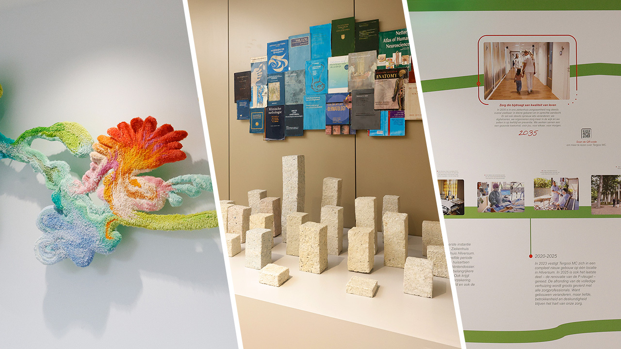 ‘Deze drie kunstwerken laten samen zien wat we belangrijk vinden in Tergooi MC,’ zegt Marijntje Wetzels, lid raad van bestuur. ‘Ze vertellen waar we vandaan komen, hoe we veranderen en voor wie we het doen. De werken lijken verschillend, maar samen vormen ze één geheel. Warmte en herkenning, groeiende kennis en onze geschiedenis komen samen. Zo voel je: we bouwen voort op wat er al is, met respect voor wat was en ruimte voor wat komt.’