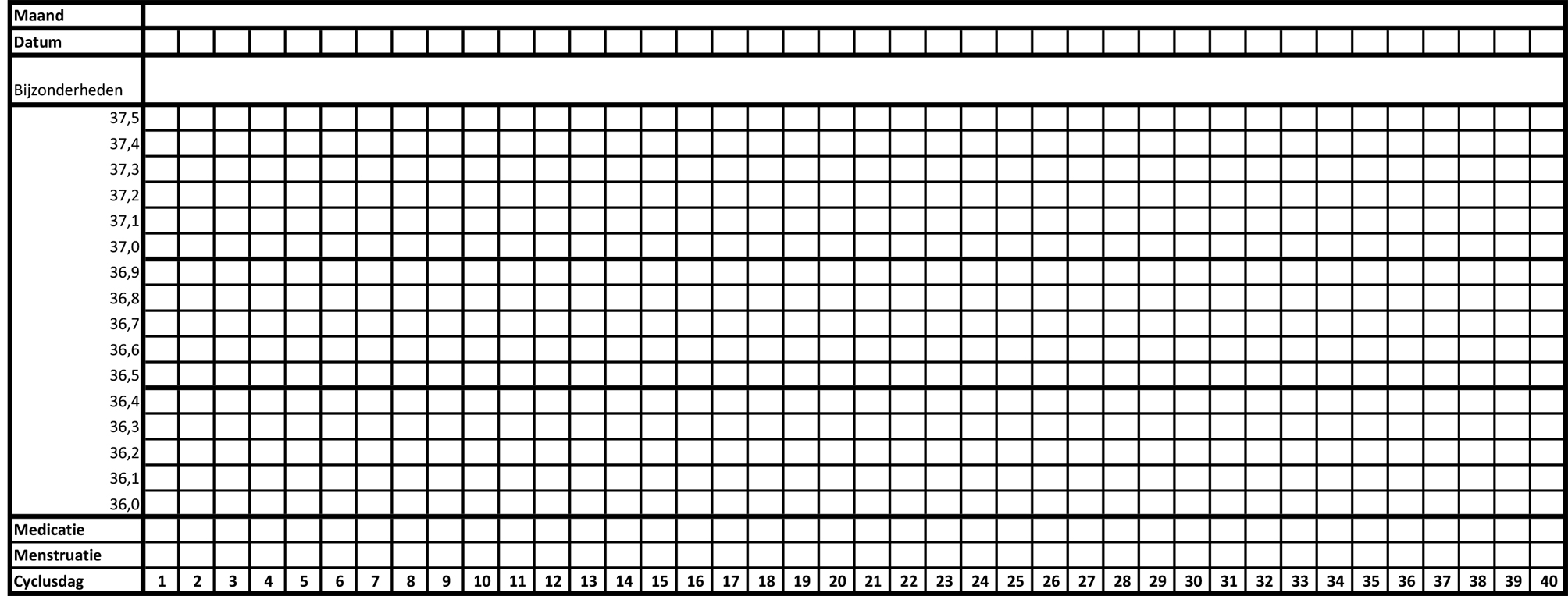 Houd vanaf de eerste dag van de menstruatie dagelijks uw temperatuur bij: de eerste dag van de menstruatie is cyclusdag 1.