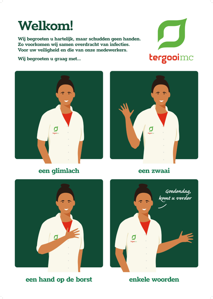 Goede hygiëne is cruciaal in het ziekenhuis. Het kan letterlijk van levensbelang zijn, omdat infecties ernstig kunnen zijn voor uw gezondheid. Daarom vragen we u om samen met ons bij te dragen aan een schone en veilige zorgomgeving. We begroeten u daarom ook zonder handen te schudden. Dit is niet alleen in uw eigen belang, maar ook in het belang van andere patiënten en zorgverleners.